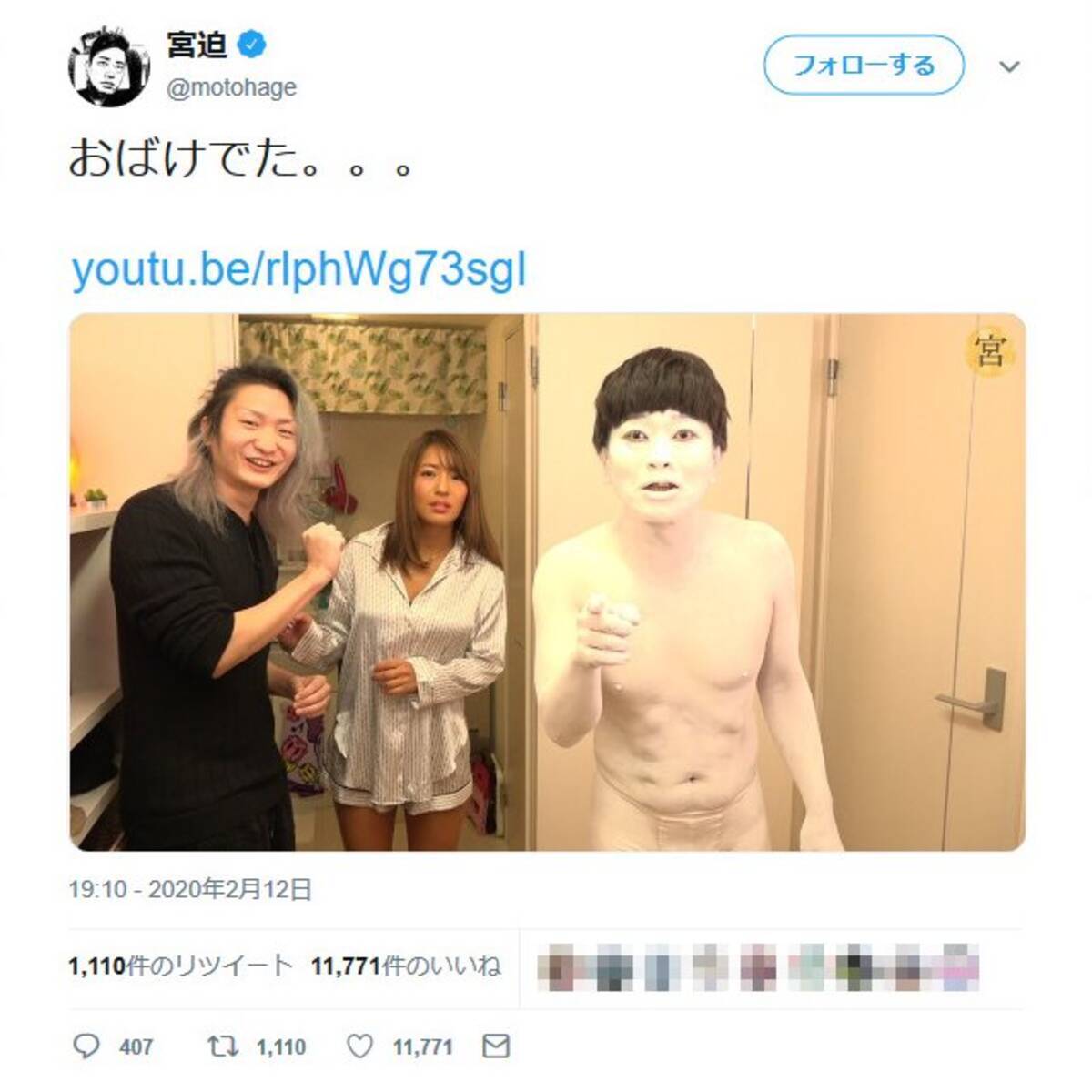 宮迫博之さん おばけでた あの不気味な白塗りのコントがyoutubeで復活 呪怨くん に反響 年2月13日 エキサイトニュース