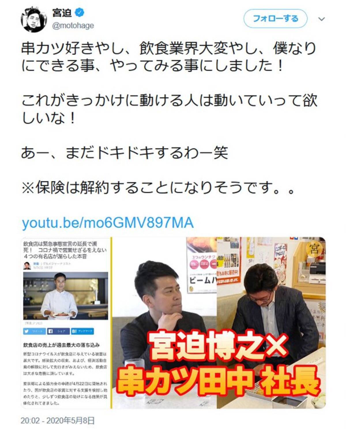 宮迫博之2000万円で 串カツ田中 のネーミングライツ購入宣言 串カツ宮迫 に 年5月9日 エキサイトニュース